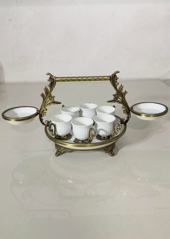 ایم کافی ست ۶ نفره رو میتونید با طراحی که شده دونفره هم استفاده کنید و در رنگ های آنتیک و طلایی قابل سفارش هست استفاده شده از چینی درجه عالی و نواری و دسته و پایه از آلیاژ برنج هستش